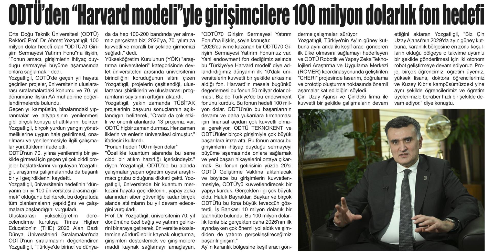 ODTÜ'DEN "HARVARD MODELİ"YLE GİRİŞİMCİLERE 100 MİLYON DOLARLIK FON HEDEFİ