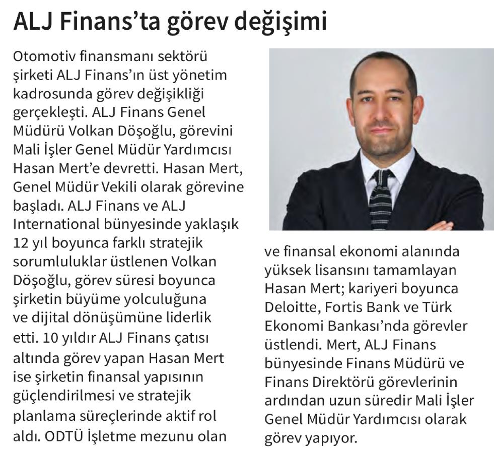ALJ FİNANS'TA GÖREV DEĞİŞİMİ