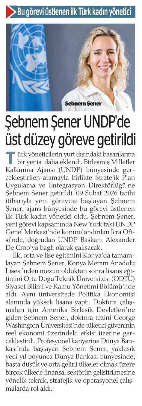 ŞEBNEM ŞENER UNDP'DE ÜST DÜZEY GÖREVE GETİRİLDİ