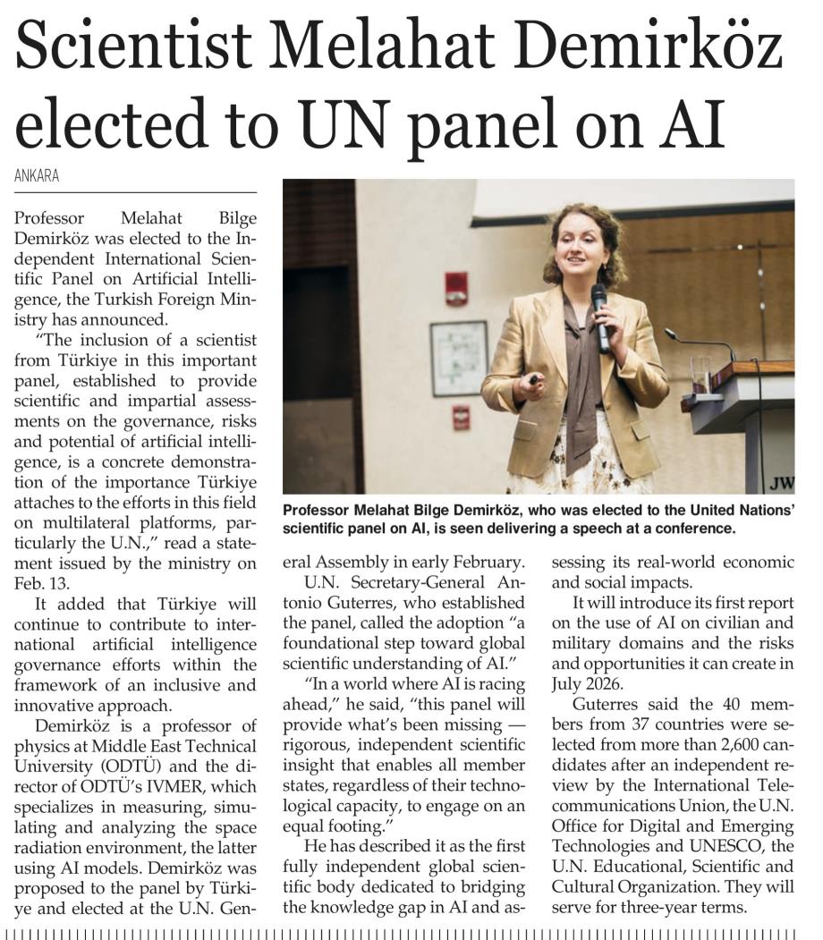 TURKISH SCIENTIST ELECTED TO UN'S PANEL ON AI [Devam - 1]