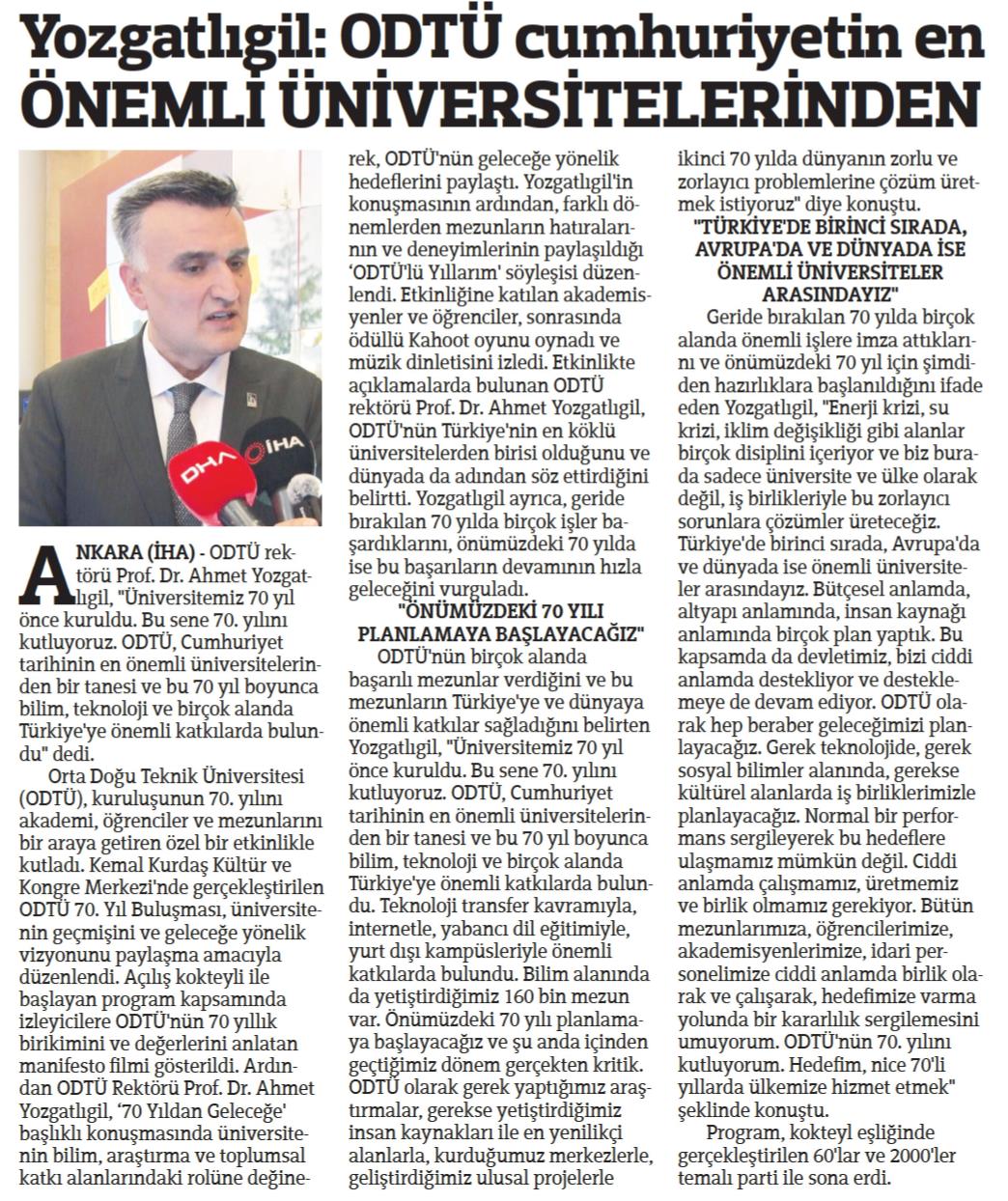 YOZGATLIGİL: ODTÜ CUMHURİYETİN EN ÖNEMLİ ÜNİVERSİTELERİNDEN
