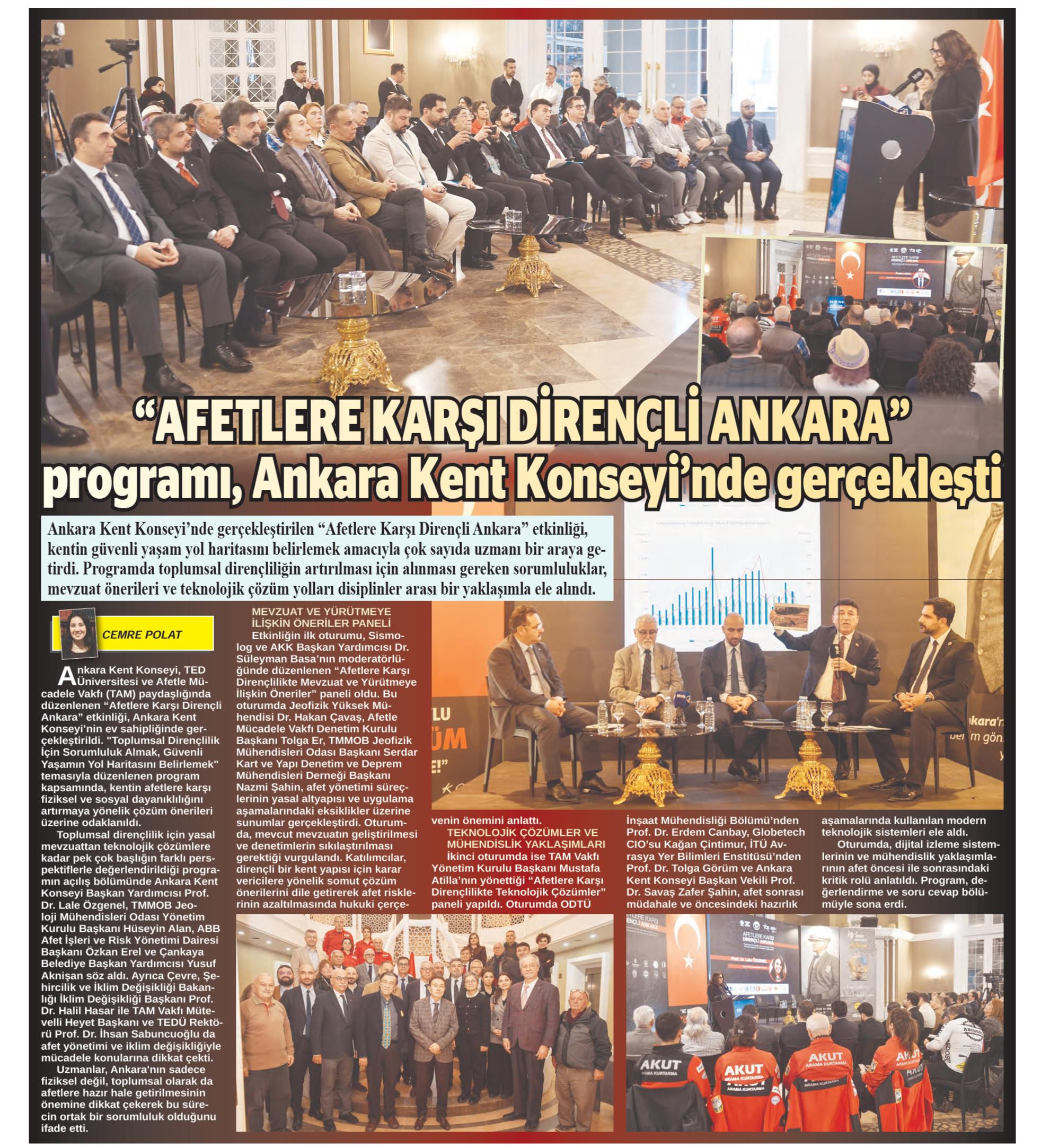 "AFETLERE KARŞI DİRENÇLİ ANKARA" ETKİNLİĞİ ÇOK SAYIDA UZMANI BİR ARAYA GETİRDİ [Devam - 1]