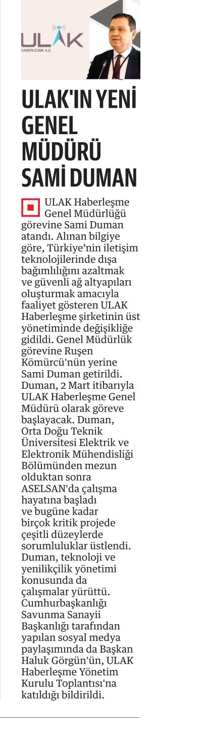 ULAK'IN YENİ GENEL MÜDÜRÜ SAMİ DUMAN