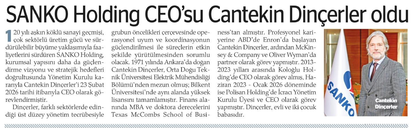 SANKO HOLDİNG CEO'SU CANTEKİN DİNÇERLER OLDU