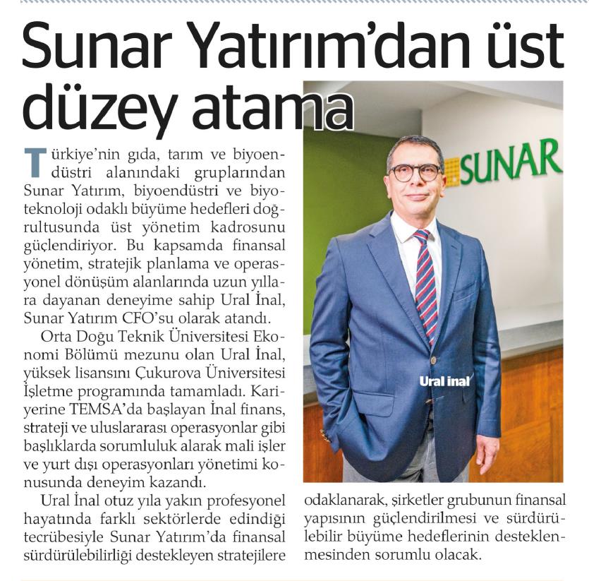 SUNAR YATIRIM'DAN ÜST DÜZEY ATAMA