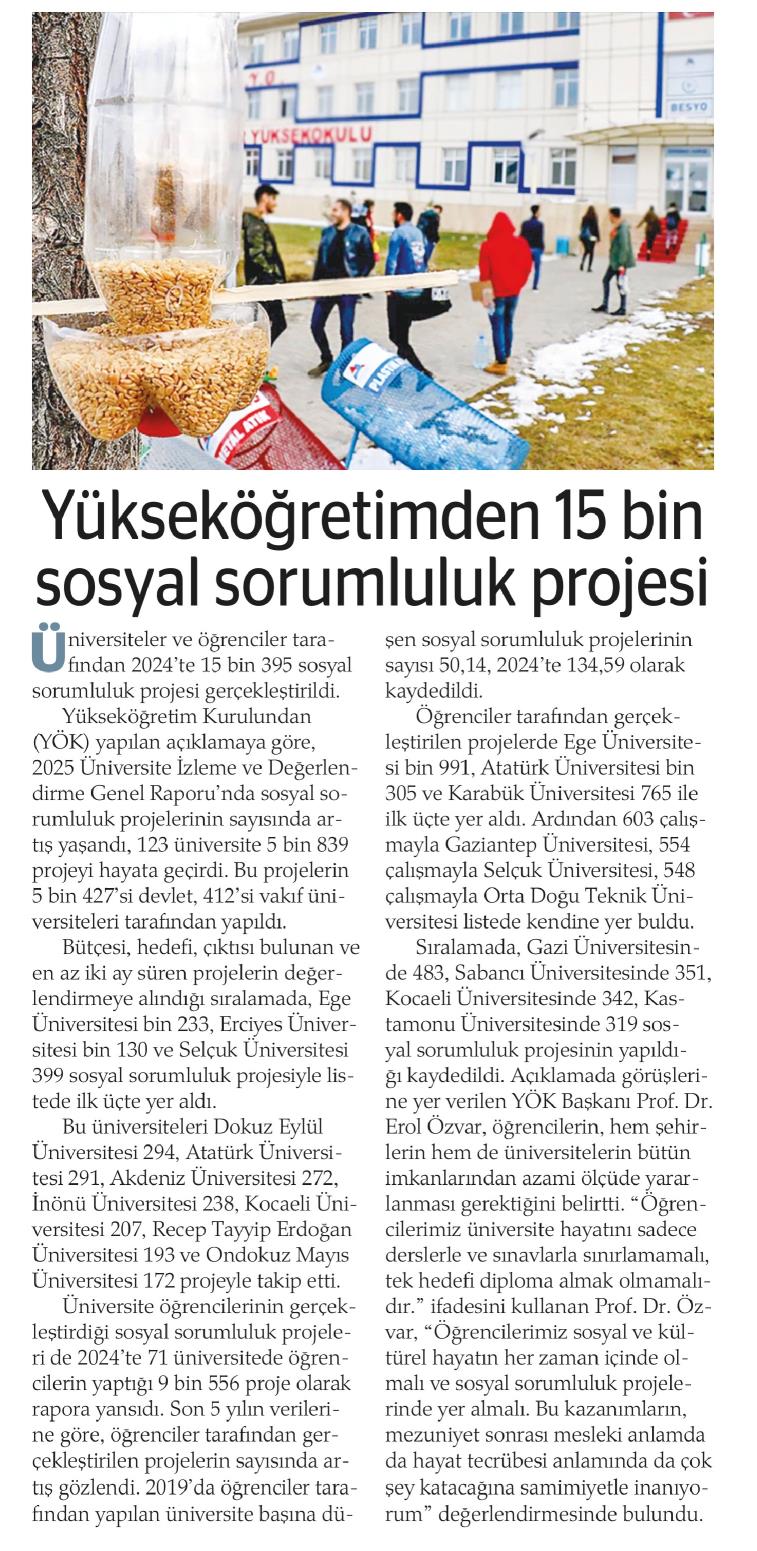 YÜKSEKÖĞRETİMDEN 15 BİN SOSYAL SORUMLULUK PROJESİ