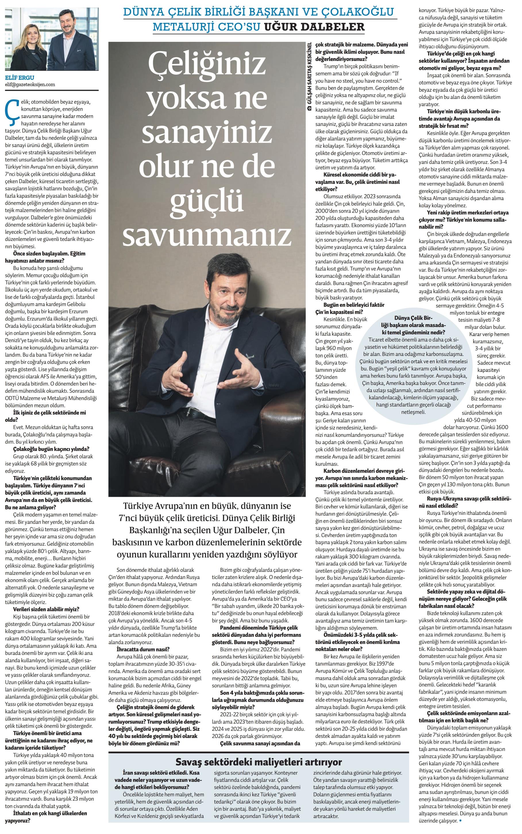 ÇELİĞİNİZ YOKSA NE SANAYİNİZ OLUR NE DE GÜÇLÜ SAVUNMANIZ
