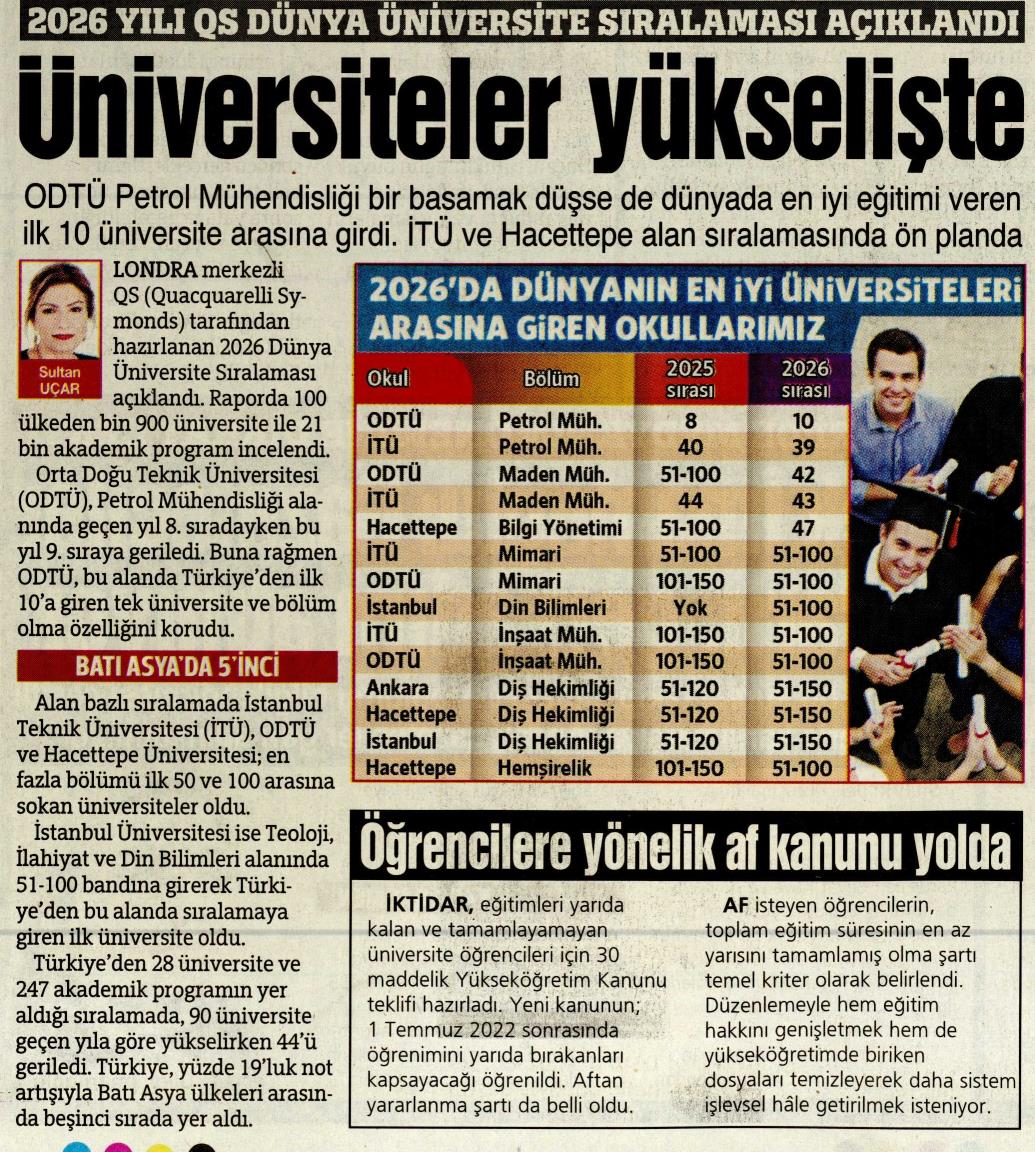 ÜNİVERSİTELER YÜKSELİŞTE